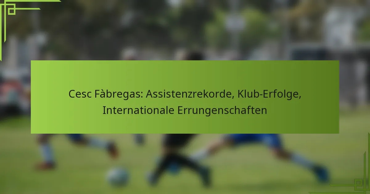 Cesc Fàbregas hat eine bemerkenswerte Karriere mit bedeutenden Erfolgen sowohl auf Vereins- als auch auf internationaler Ebene hingelegt. Sein Werdegang umfasst zahlreiche Assistenzrekorde, Vereinserfolge mit Top-Teams und bemerkenswerte internationale Errungenschaften mit Spanien.